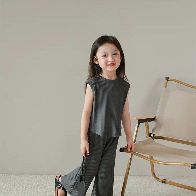 赤ちゃん ジュニア 夏 子供服 ロングパンツ ノースリーブ 女の子 tシャツ トップス ボトムス ベビー服 上下セット セットアップ ガウチョパンツ 長ズボン 入園 誕生日 プレゼント 入学