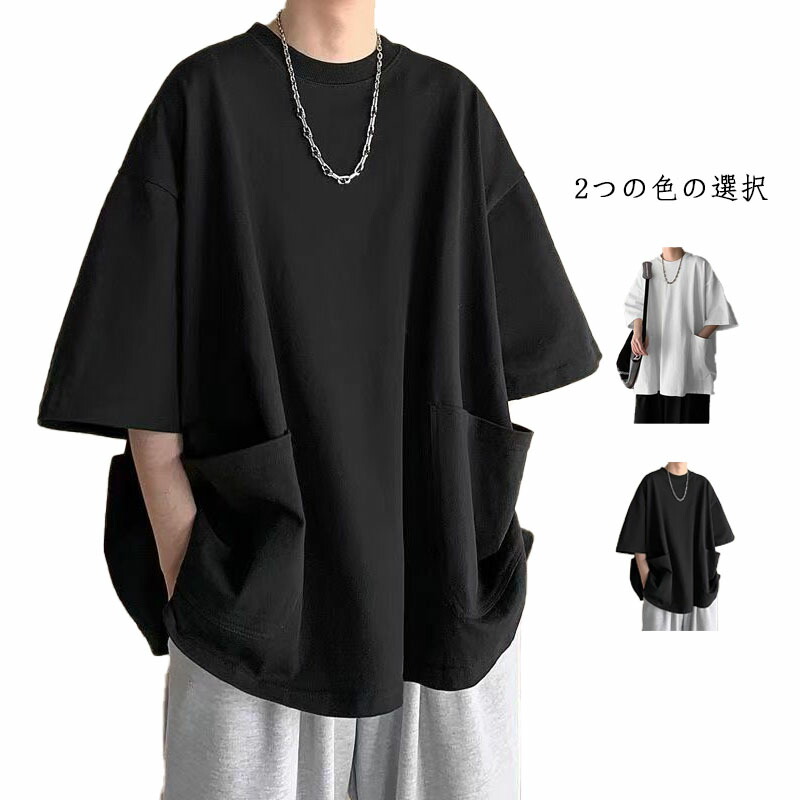 七分袖Tシャツ オーバーサイズ ストリ トップス カジュアルシャツ 続々入荷中 ブラック ホワイト M L XL 2XL 3XL