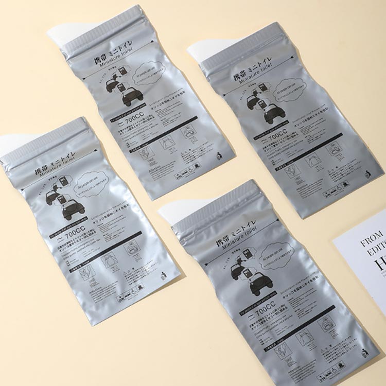 【密閉型デザイン】携帯ミニトイレをご使用後、袋のジッパーをしっかり閉める。すぐ捨てることができなくても臭わず快適!菌も漏らさず衛生的です。