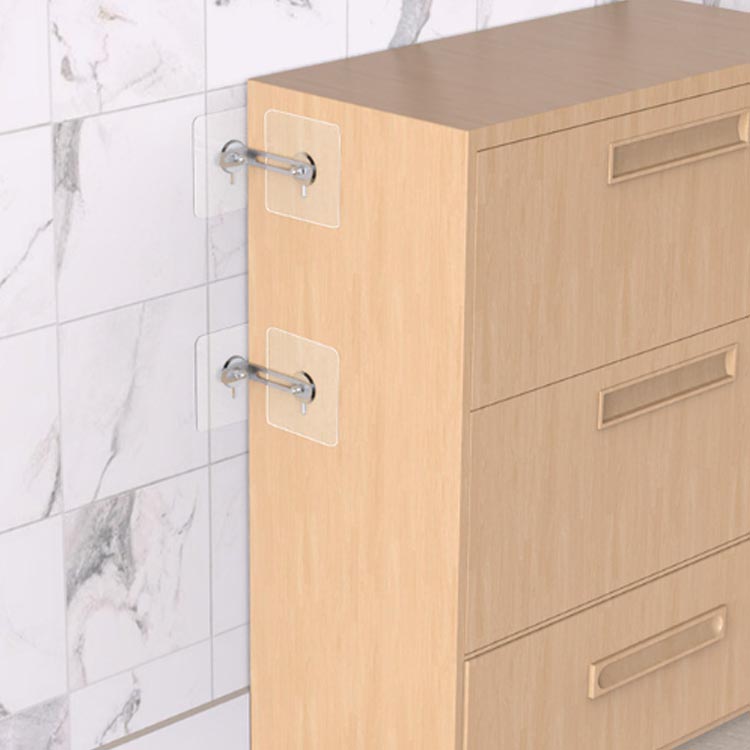 【穴開け不要】簡単取り付け、工具不要の家具転倒防止。接着剤で固定されているため、壁面に穴を開ける必要がありません。