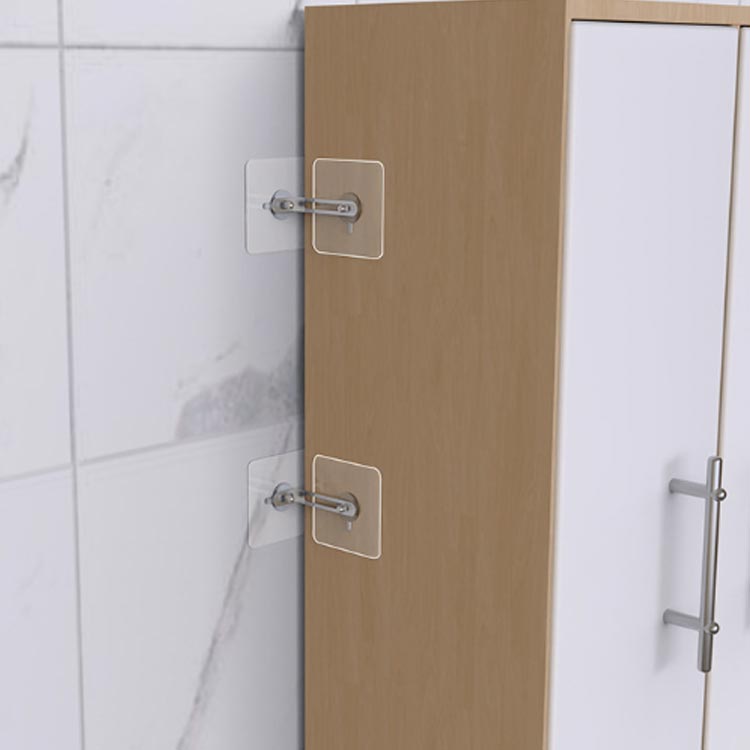 【穴開け不要】簡単取り付け、工具不要の家具転倒防止。接着剤で固定されているため、壁面に穴を開ける必要がありません。