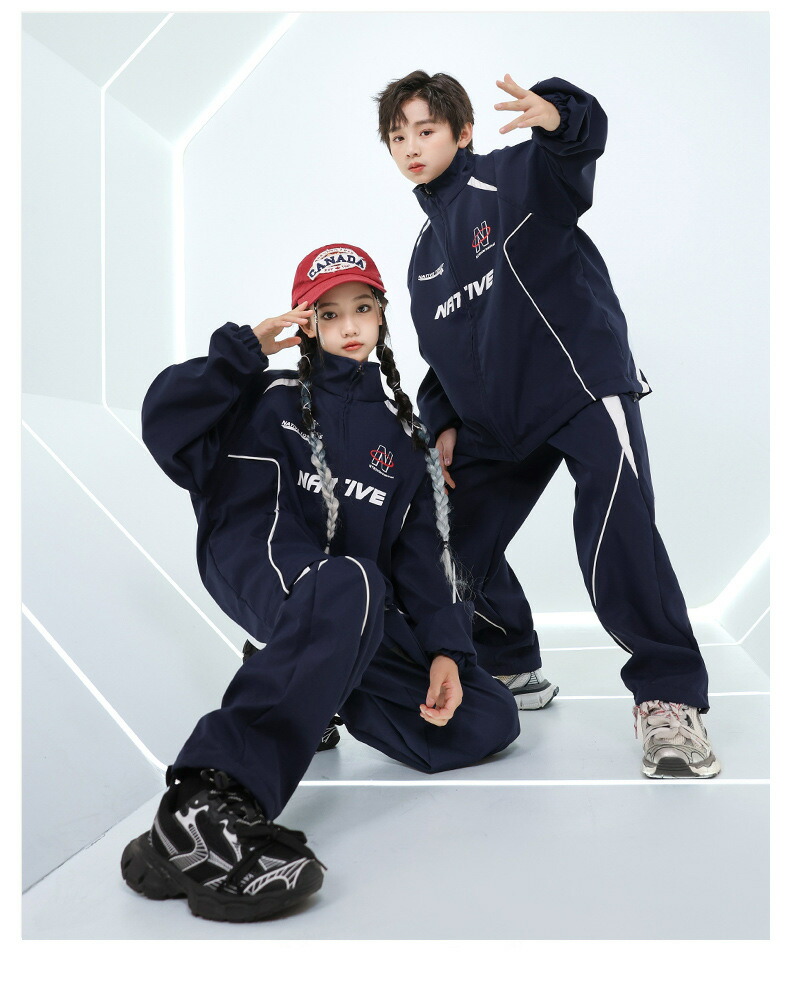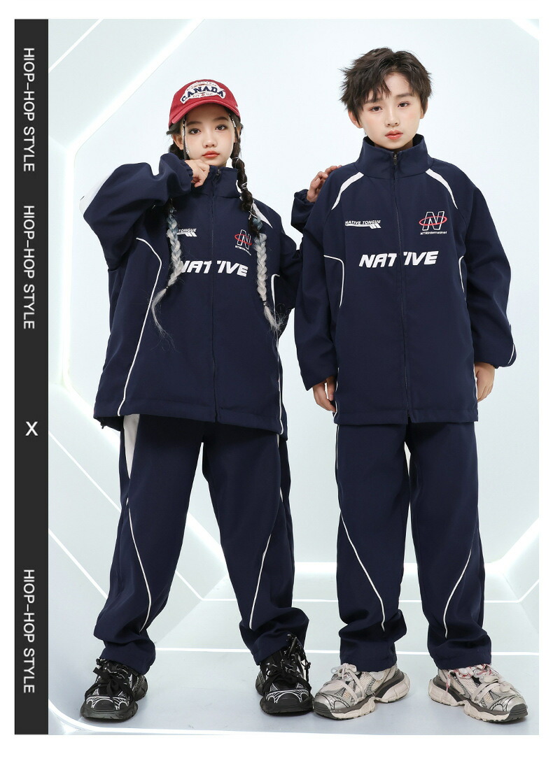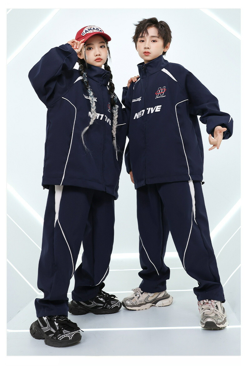 キッズ ダンス衣装 紺 ウィンドブレー キッズ スーツ カジュアルセットアップ カジュアルパンツセット 新登場! ジャケットのみ パンツのみ ジャケット+パンツ2点 110 120 130 140 150 160 170 180