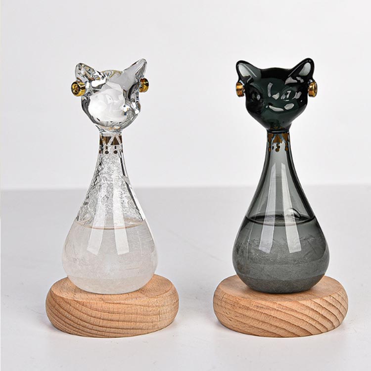 ストームグラス ネコ ガラス天気予報ボ グレー猫 ホワイト猫