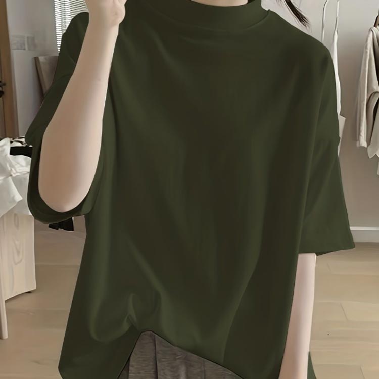 ハイネック カットソー 半袖Tシャツ トップス Tシャツ カットソー 特集 ブラック ホワイト ブルー グレーブルー キャラメル カーキ M L XL 2XL 3XL