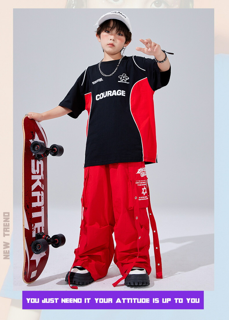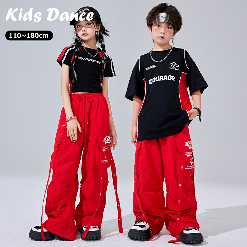 キッズ ダンス衣装 赤 セットアップ キッズ ベビー マタニティ 早い者勝ち TシャツA TシャツB パンツ TシャツA+パンツ TシャツB+パンツ 110 120 130 140 150 160 170 180