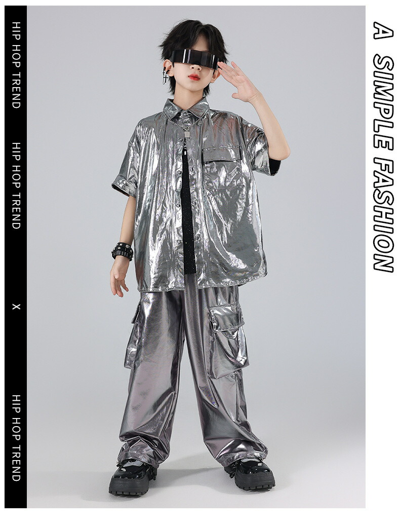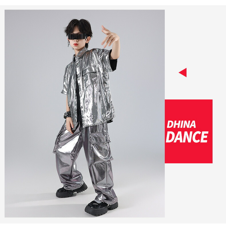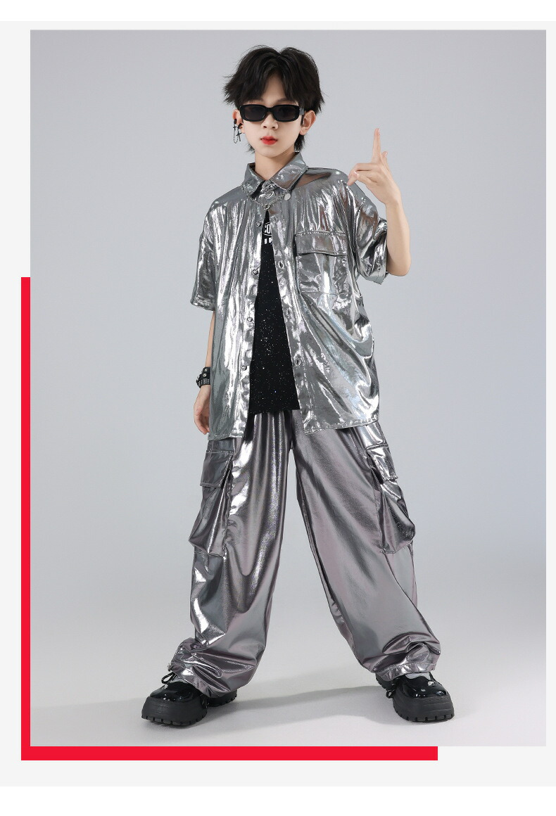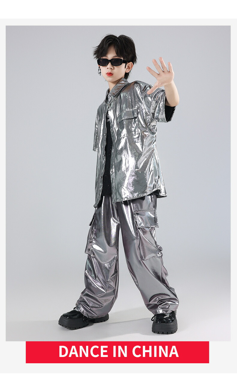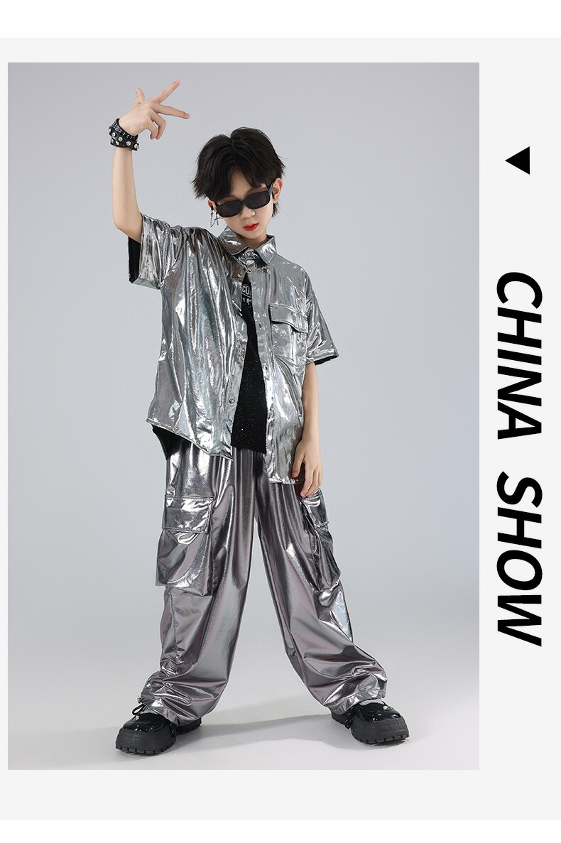 キッズ ダンス衣装 シルバー シャツ キッズ ベビー マタニティ 早い者勝ち トップスのみ パンツのみ トップス+パンツ トップス+パンツ+キラキラTシャツ 120 130 140 150 160 170 180
