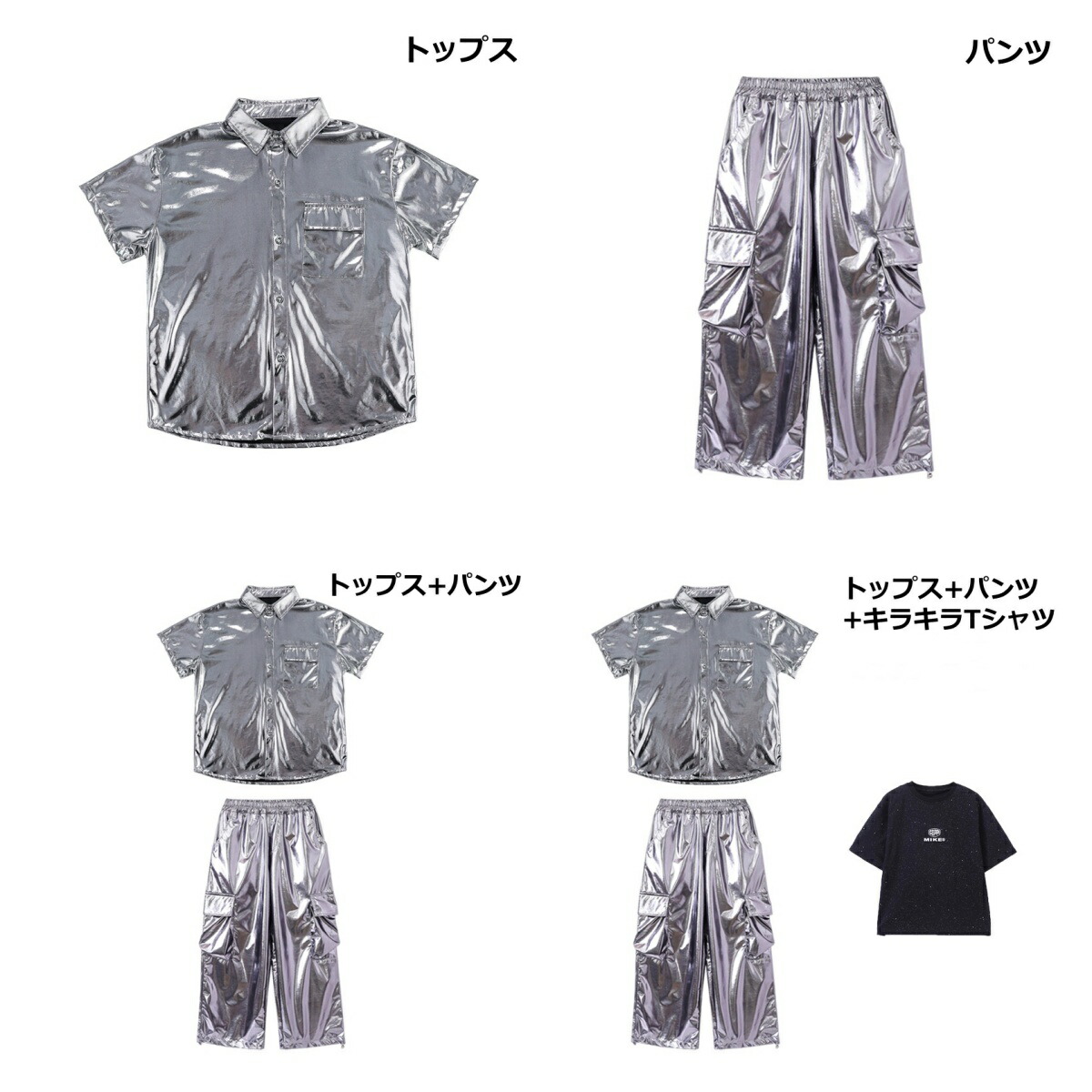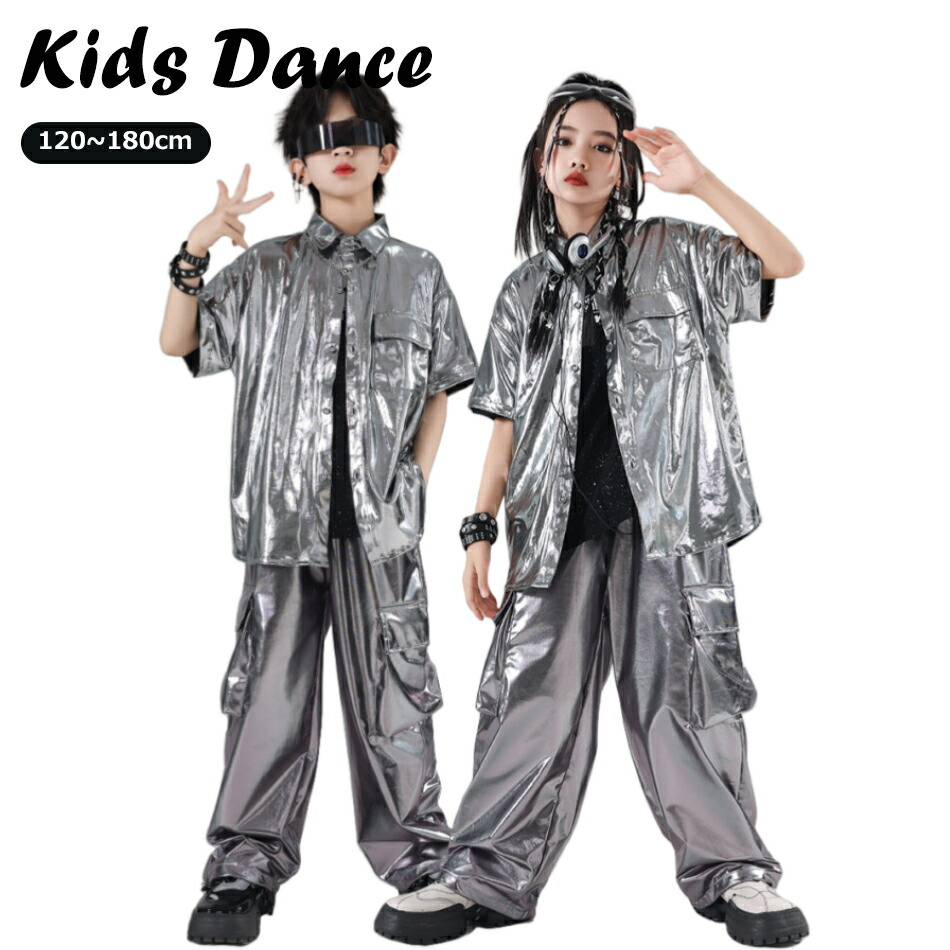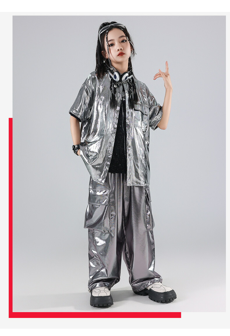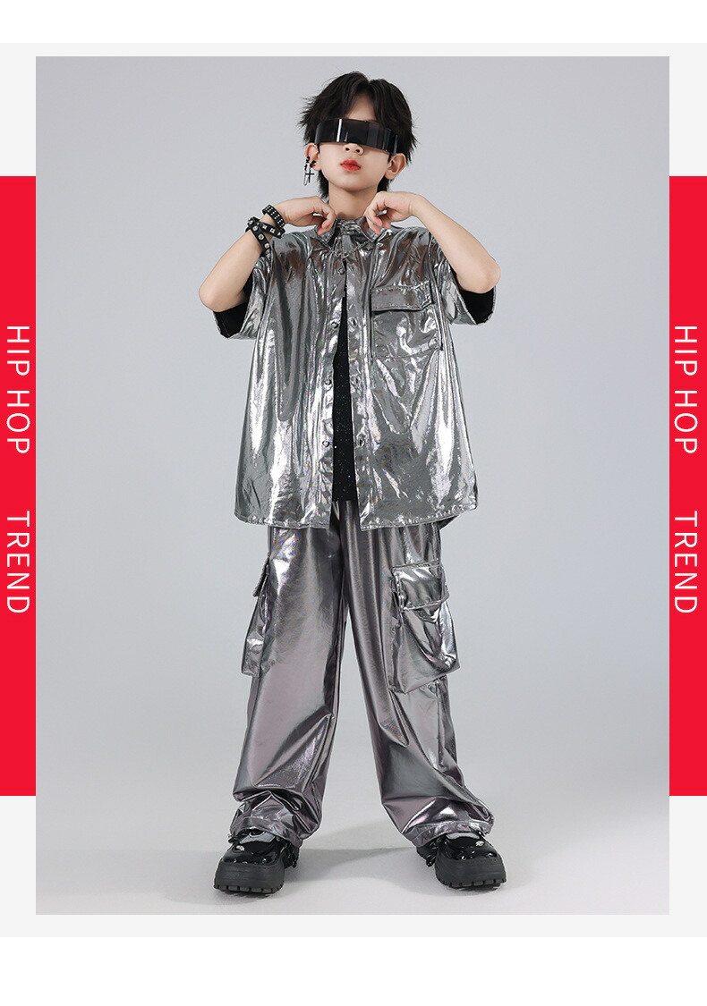 キッズ ダンス衣装 シルバー シャツ キッズ ベビー マタニティ 早い者勝ち トップスのみ パンツのみ トップス+パンツ トップス+パンツ+キラキラTシャツ 120 130 140 150 160 170 180