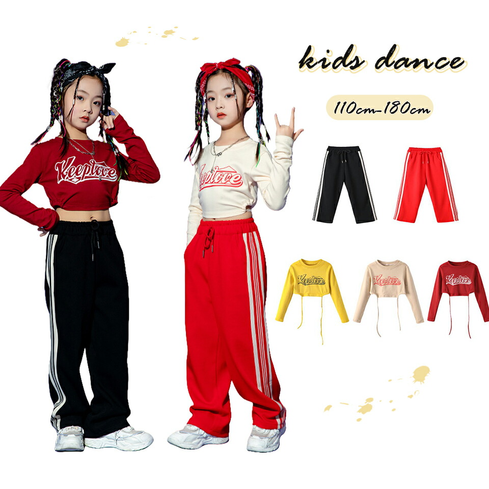 キッズ ダンス衣装 セットアップ 女の キッズ スーツ カジュアルセットアップ カジュアルパンツセット 続々登場 イエロートップス単品 ベージュトップス単品 レッドトップス単品 ブラックパンツ単品 レッドパンツ単品 110 120 130 140 150 160 170 180