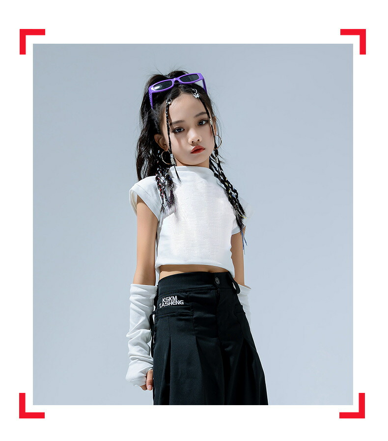 キッズ ダンス衣装 セットアップ かっ キッズ ベビー マタニティ 早い者勝ち 白トップス単品(腕カバー付き) 黒トップス単品(腕カバー付き) 白パンツ単品 黒パンツ単品 110 120 130 140 150 160 170 180