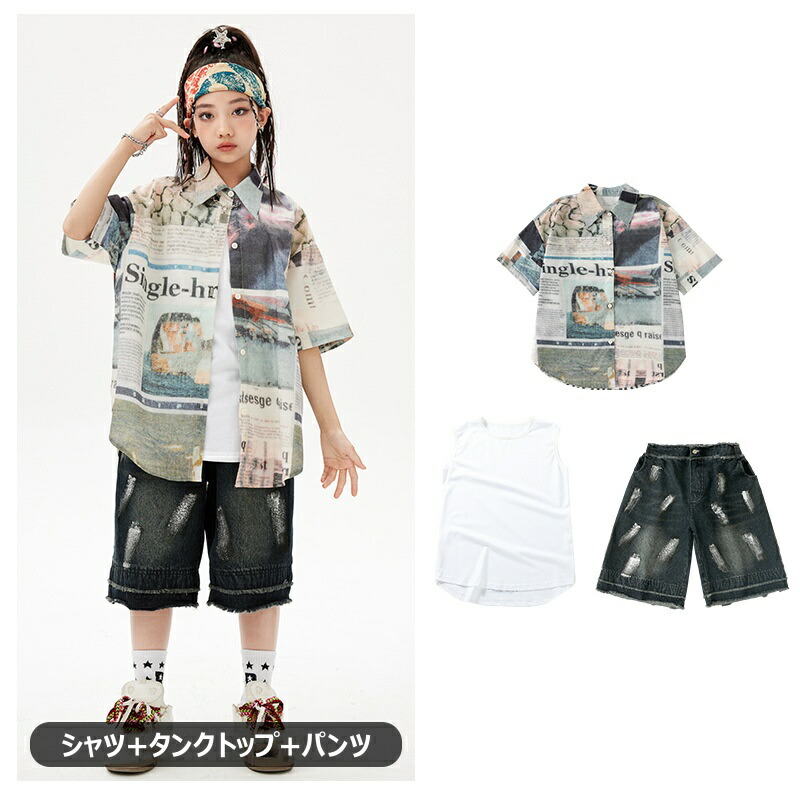 キッズ ダンス衣装 シャツ デニムパン キッズ スーツ カジュアルセットアップ カジュアルパンツセット 続々登場 シャツ パンツ シャツ+パンツ シャツ+タンクトップ+パンツ 110 120 130 140 150 160 170 180