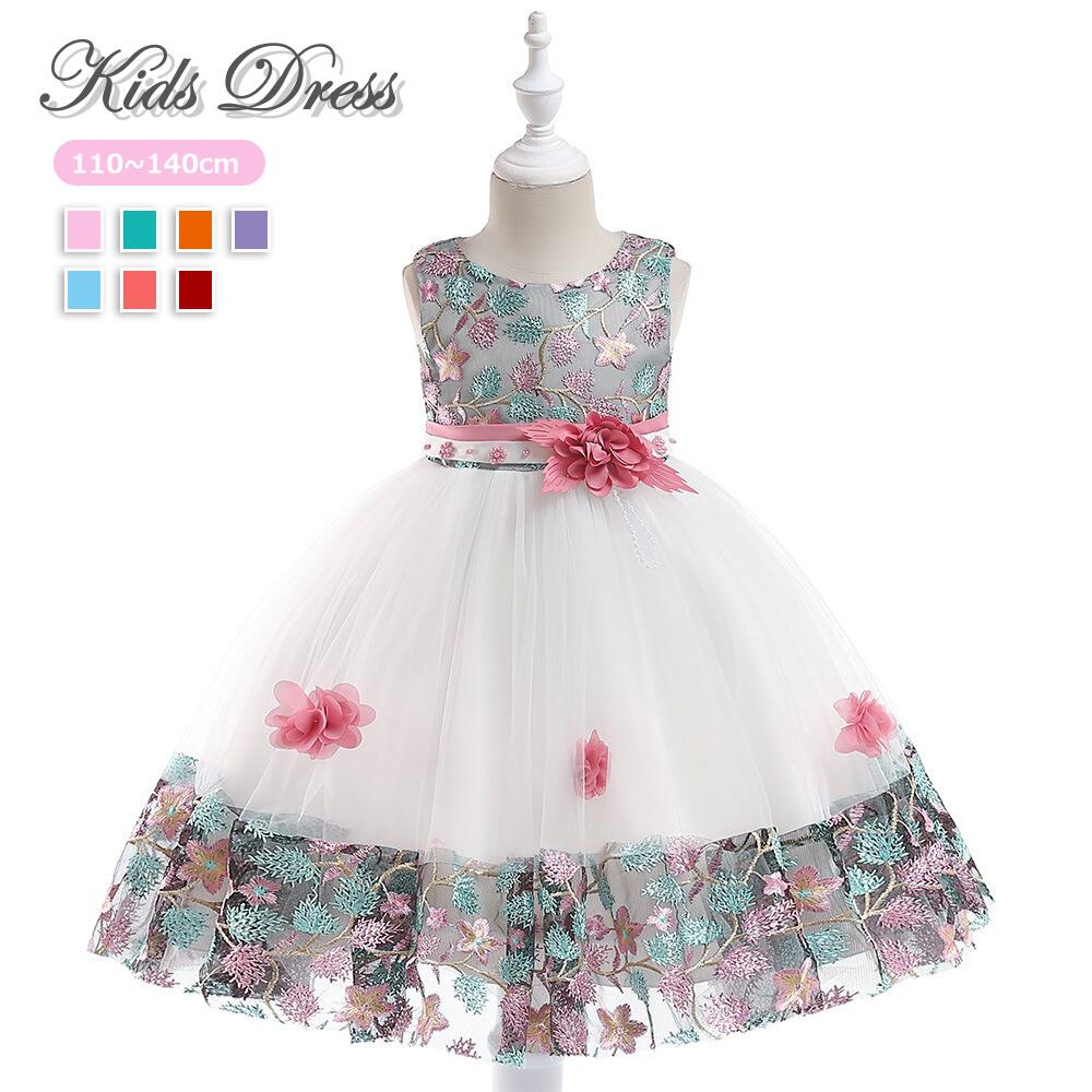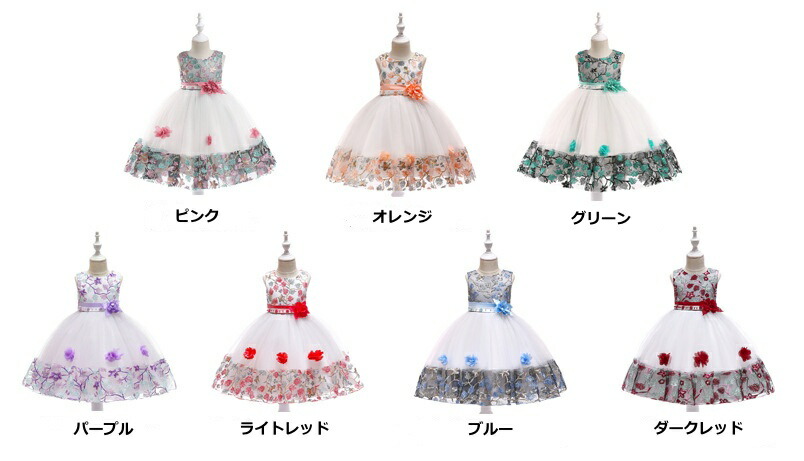子供 ドレス 子供ドレス 花柄刺繍 ピ キッズ ベビー マタニティ 早い者勝ち ピンク オレンジ グリーン パープル ライトレッド ブルー ダークレッド 100 110 120 130 140