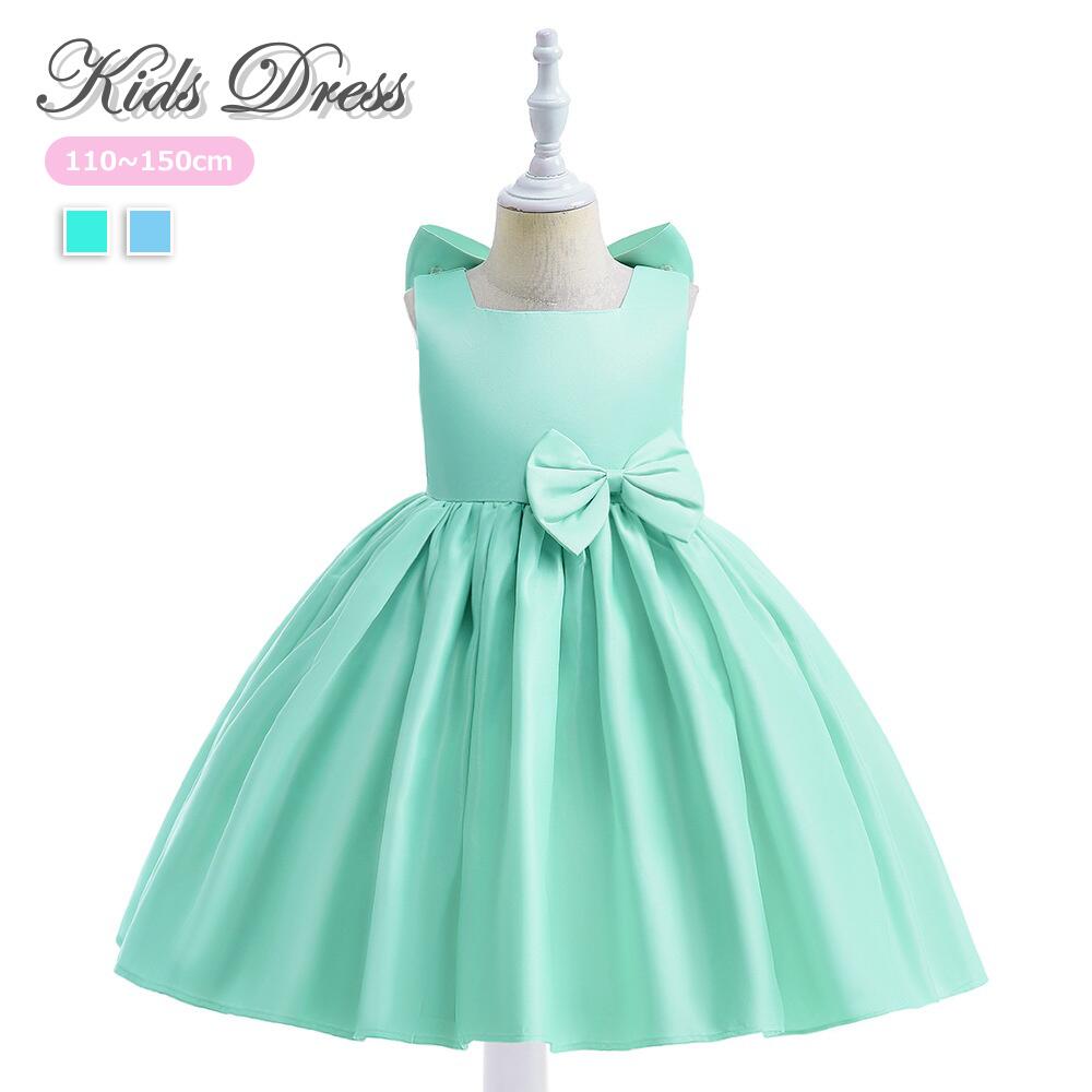ドレス 2色 子供 ピアノ発表会 子供 キッズ ドレス 新作 グリーン ブルー 110 120 130 140 150