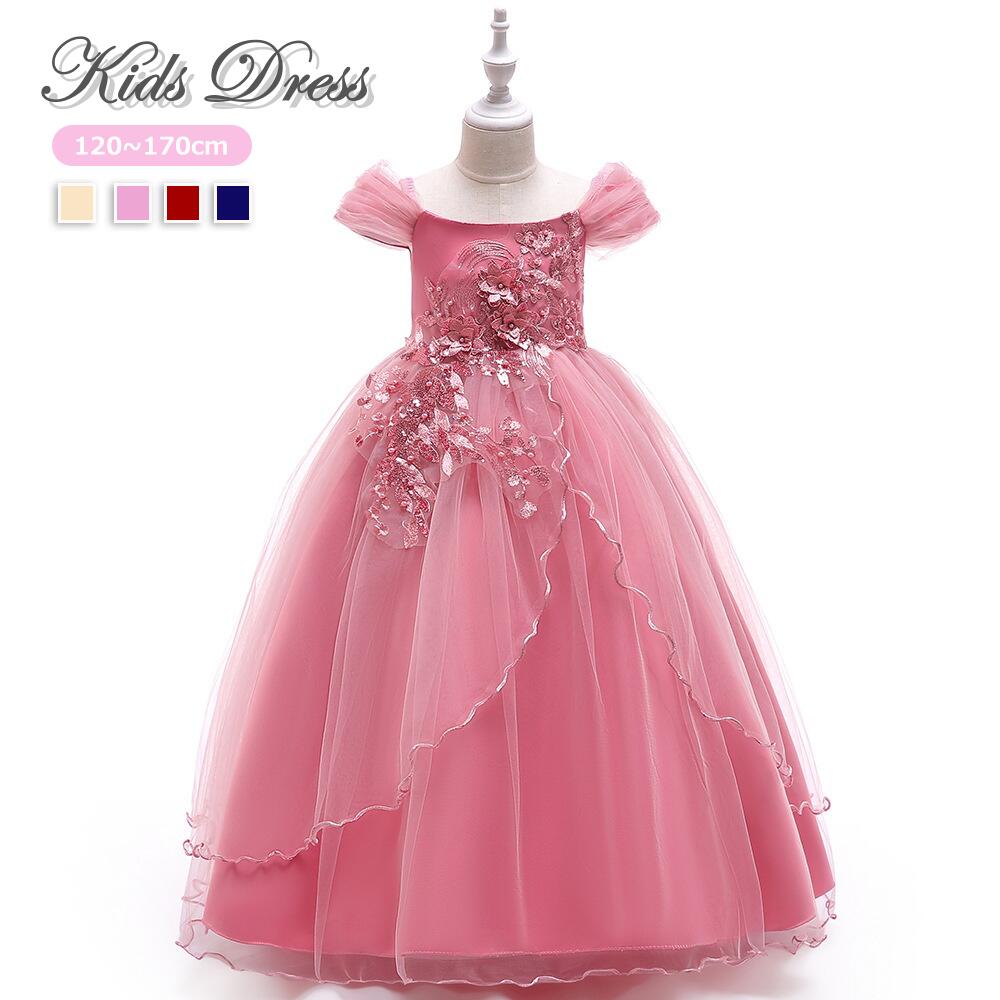 ドレス 4色 子供 ピアノ発表会 子供 キッズ ドレス 続々入荷中 シャンパン ピンク レッド ブルー 120 130 140 150 160 170