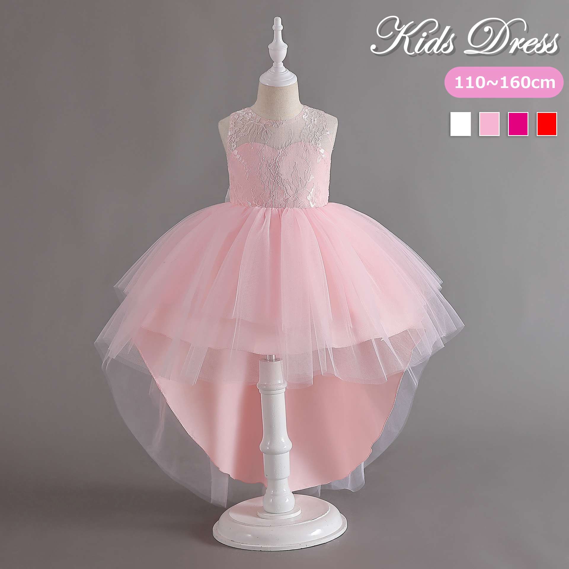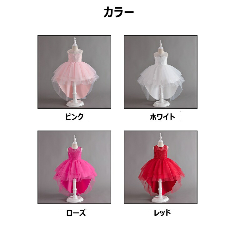 ドレス 4色 子供 ピアノ発表会 子供 キッズ ベビー マタニティ 続々入荷中 ホワイト ピンク ローズ レッド 110 120 130 140 150 160