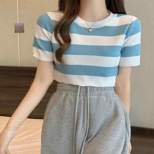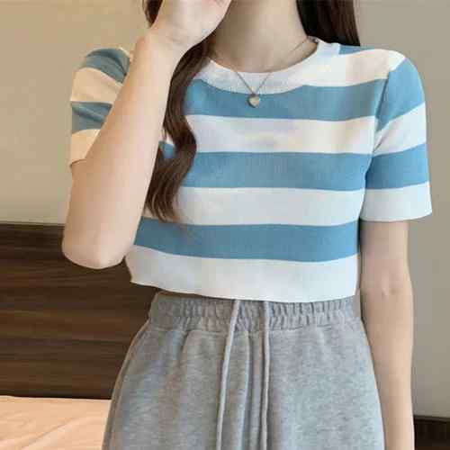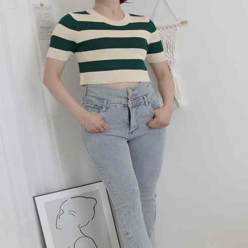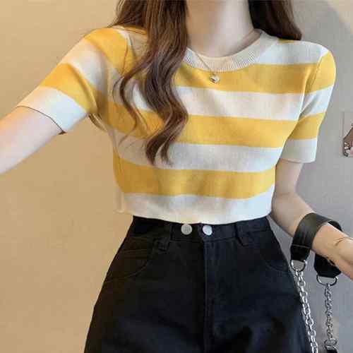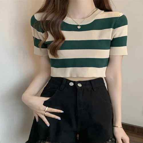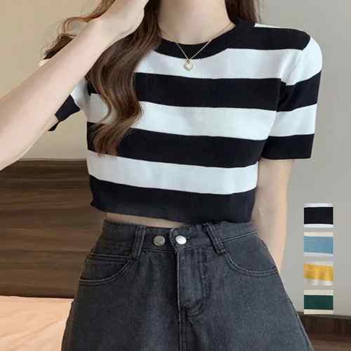 ショート丈ニットトップス へそ出し レ トップス Tシャツ カットソー 特集 ブラック ブルー ダークグリーン イエロー