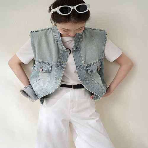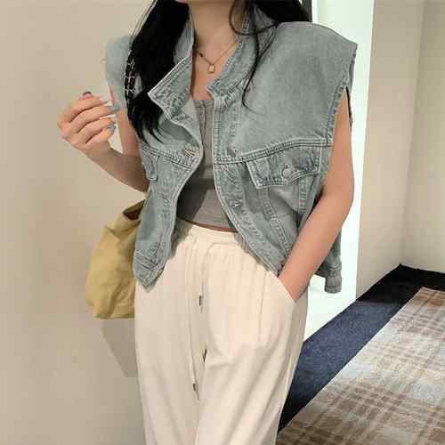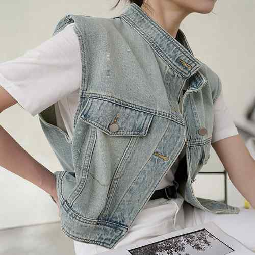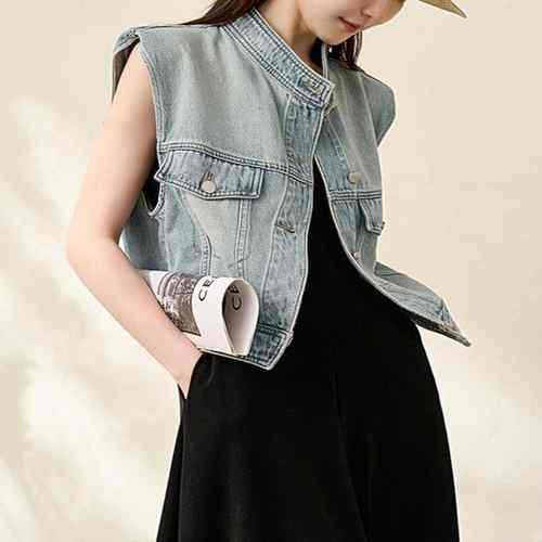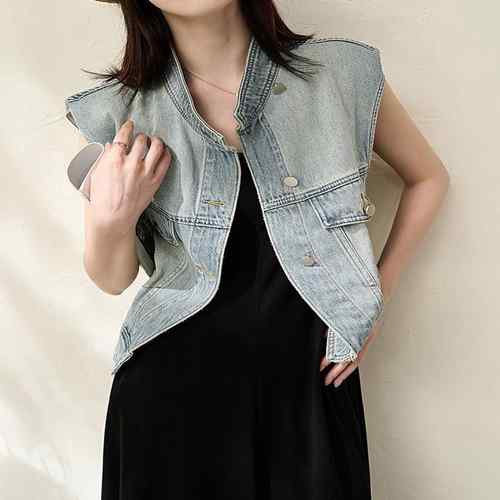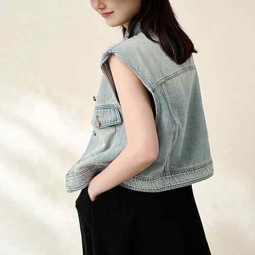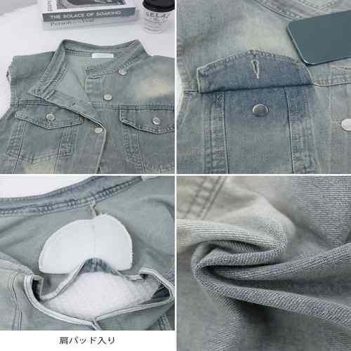 スタンドカラー デニムジャケットノース トップス ベスト 豊富な品揃え L M