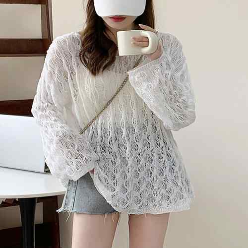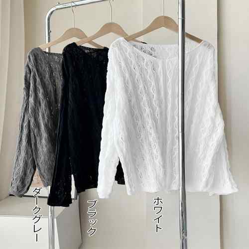 ニットトップス レディース シースルー レディースファッション 新登場! ホワイト ダークグレー