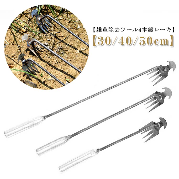 【雑草除去ツール4本鍬レーキ】【30/40/50cm】