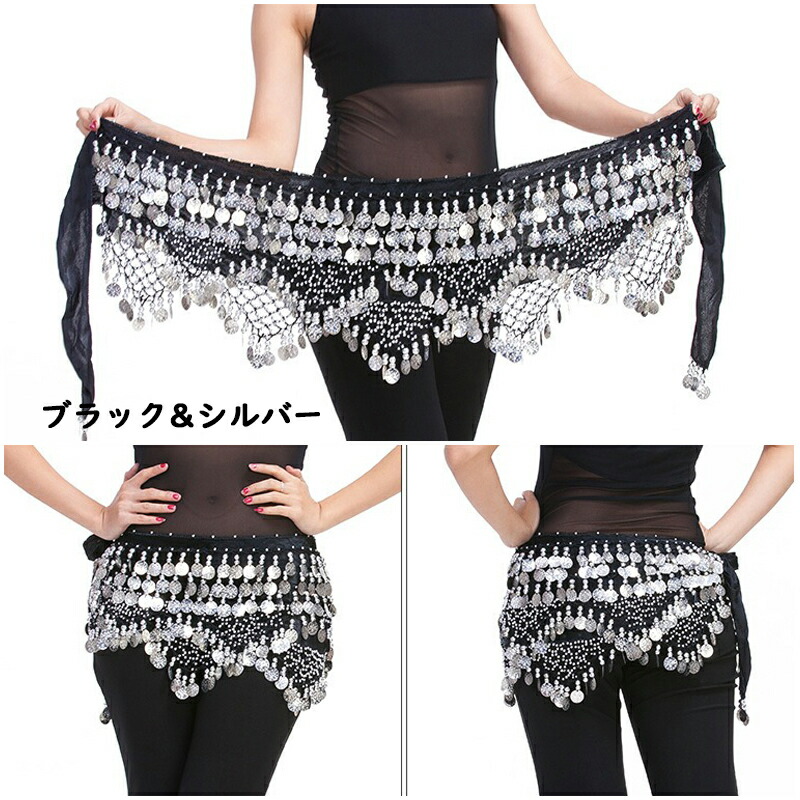 コインヒップスカーフ ベリーダンス衣装 スポーツ アウトドア 早い者勝ち ブルー ホワイト イエロー ブラック&ゴールド ブラック&シルバー レッド ローズ ピンク 水色