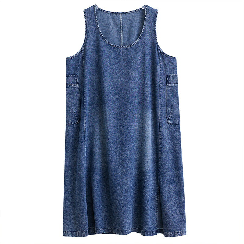 デニムワンピース ガウンワンピース シャツワンピース 大きいサイズ ポケット付き ロングワンピース 袖なし ロング丈 ゆったり 体型カバー カジュアル