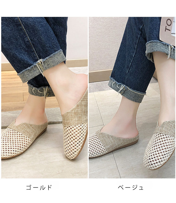 2カラー サンダル ミュール 編み上げ レディース靴 サンダル サボ 早い者勝ち ゴールド ベージュ 35(22-22.5cm) 36(22.5-23cm) 37(23-23.5cm) 38(23.5-24cm) 39(24-24.5cm) 40(24.5-25cm)
