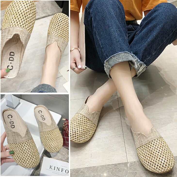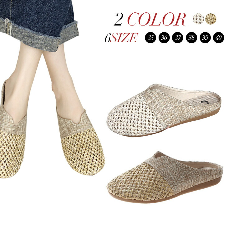 2カラー サンダル ミュール 編み上げ サボ レディース ペタンコ つっかけ カジュアル おしゃれ かわいい カッコイイ ガーリー フェミニン 水遊び リゾート 買い物 デート 夏 春 秋 お出掛け