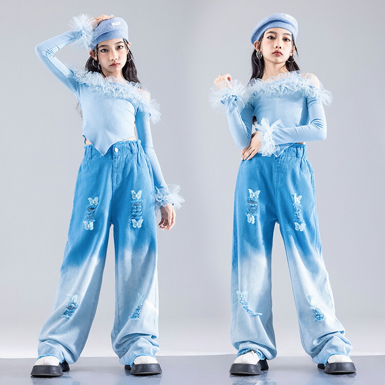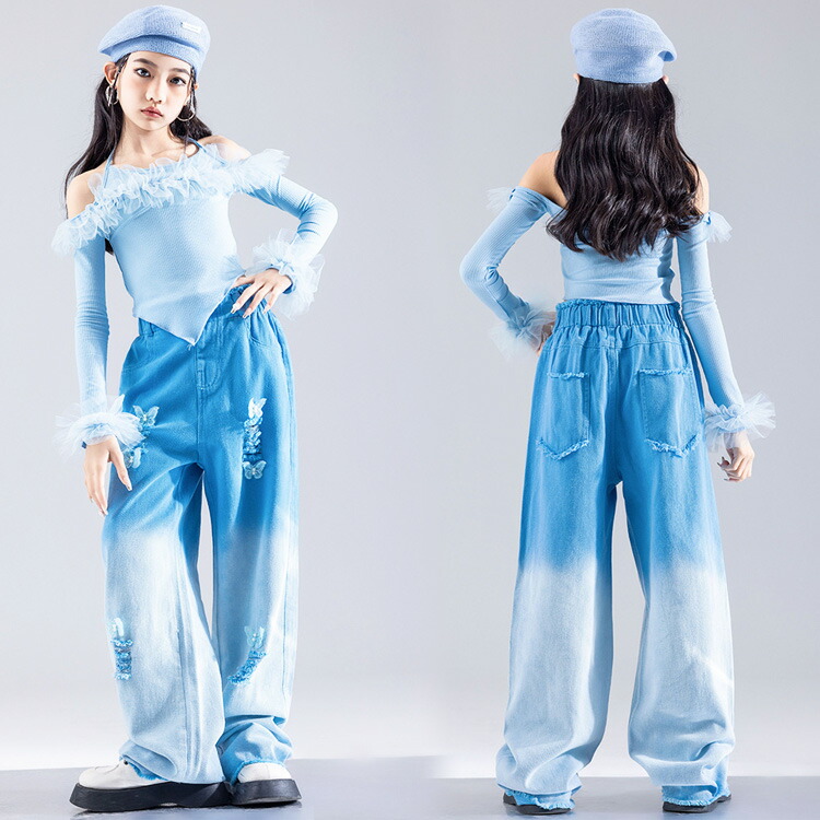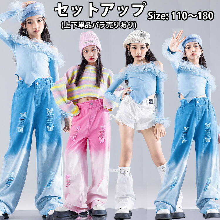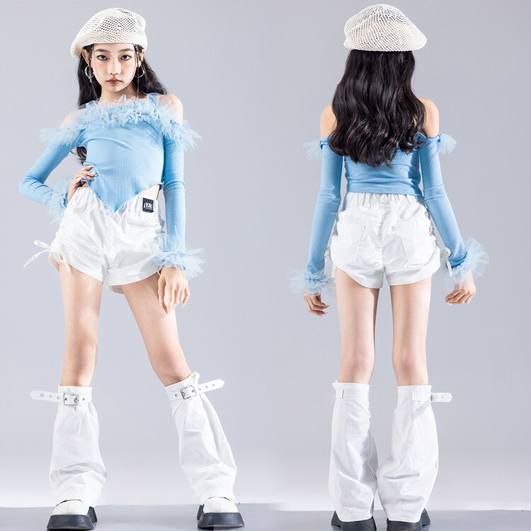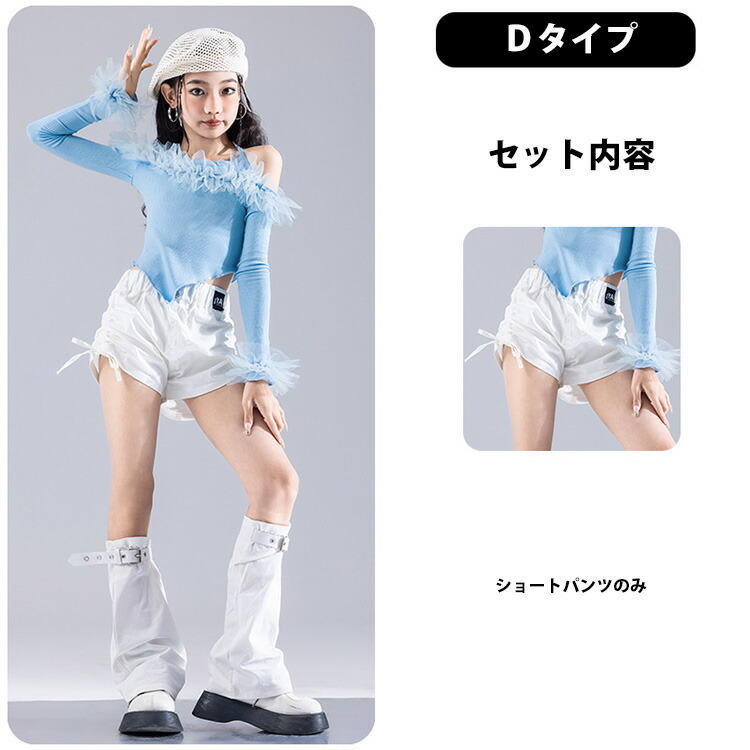 キッズダンス衣装 セットアップ ショートトップス キッズ ダンス 衣装 腰巻風 フットカバー バラ売り 単品販売 長袖 Tシャツ スカート バギーパンツ 長ズボン ヒップ ショートパンツ