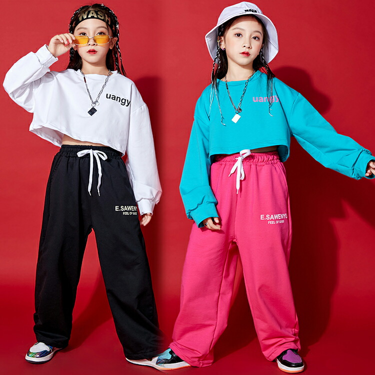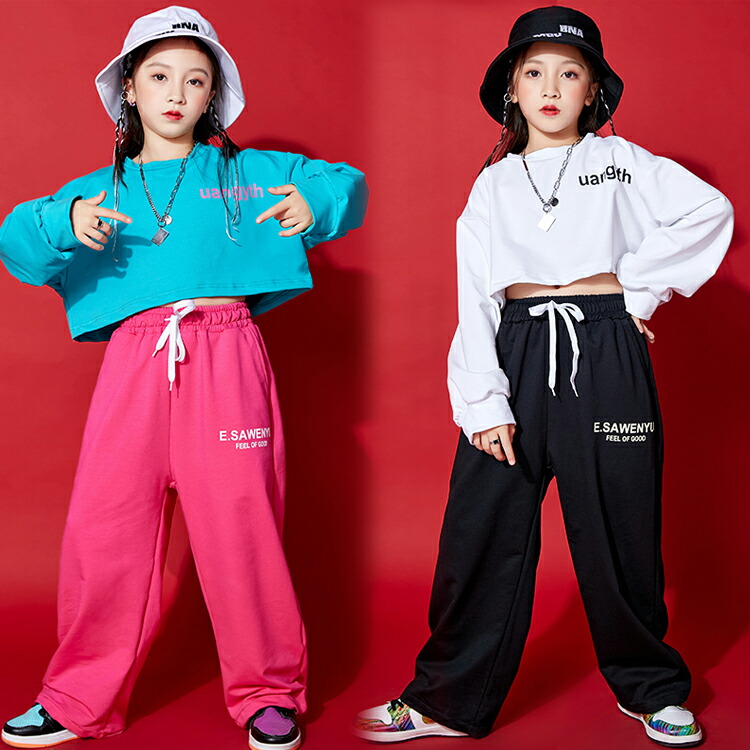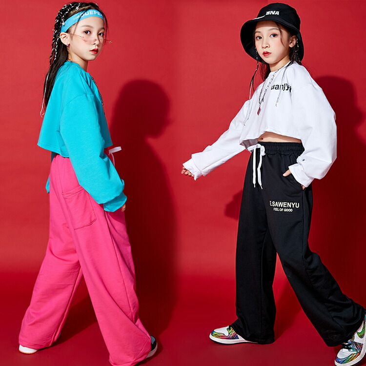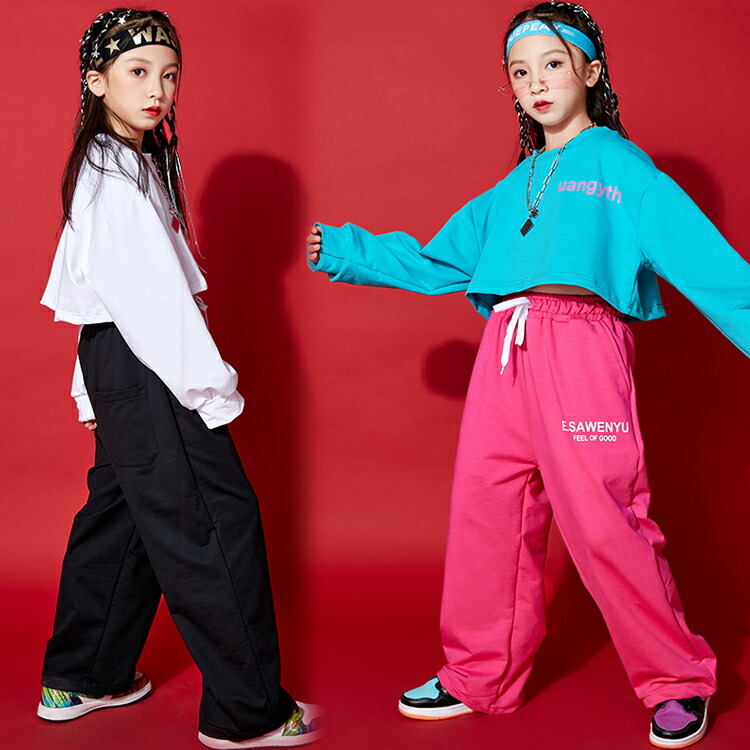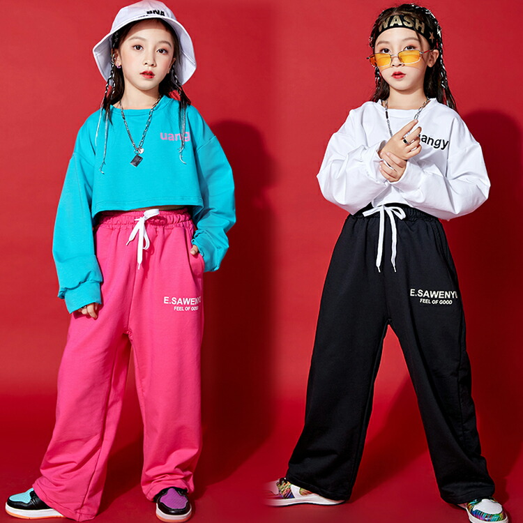 キッズダンス衣装 ショート丈 長袖トップス スウェットパンツ 別売り キッズダンス キッズボトムス 長ズボン キッズトップス 長袖 クルーネック へそ出し ヒップホップ ジュニア 派手 映 レッスン着