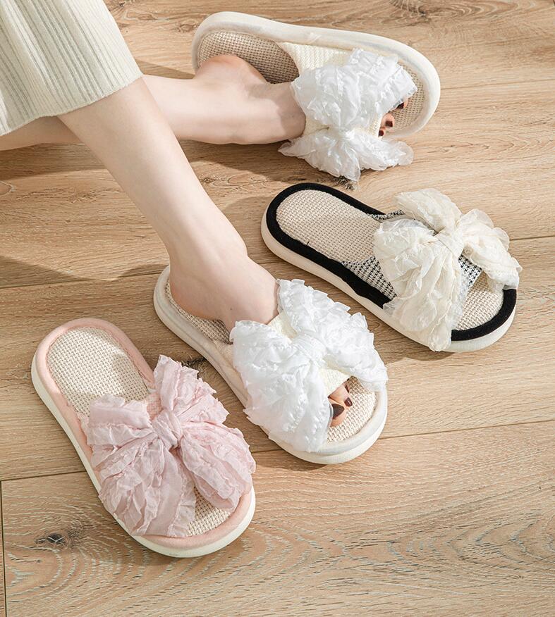 スリッパ ルームシューズ 夏用 リボン 生活雑貨 スリッパ ルームシューズ スリッパセット ルームシューズセット 続々入荷中 36-37 38-39 40-41 ホワイト ピンク ブラック