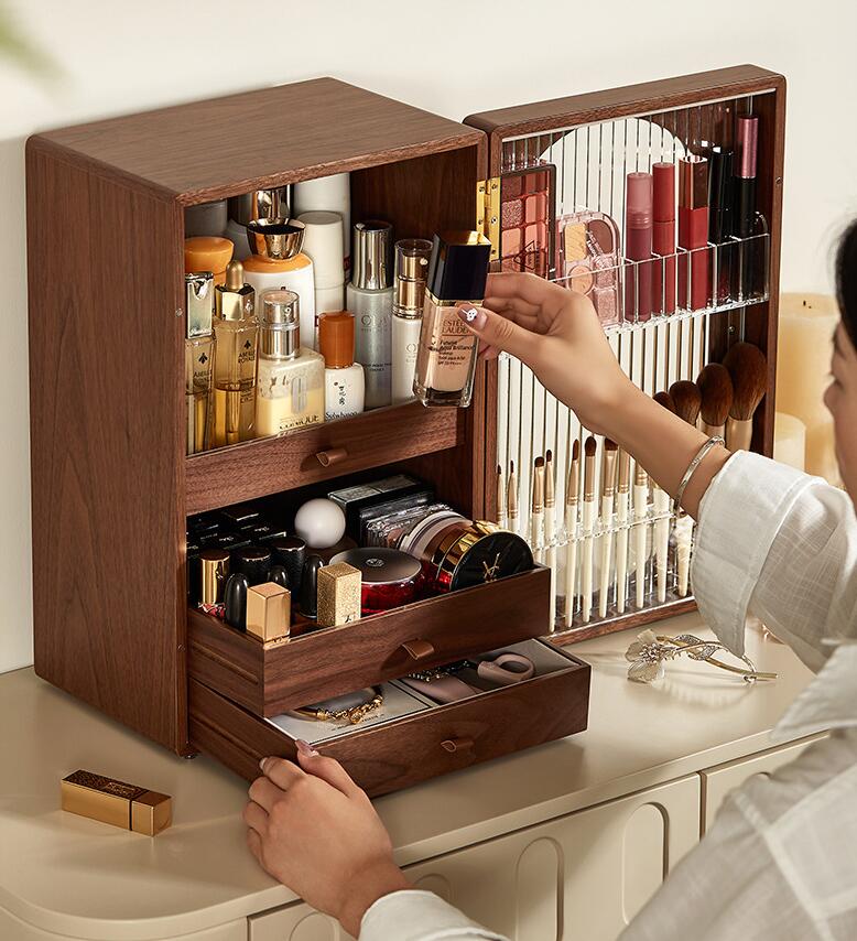 木製コスメ収納ボックス スリム メイク ジュエリー アクセサリー用品 収納ボックス ケース 続々入荷中