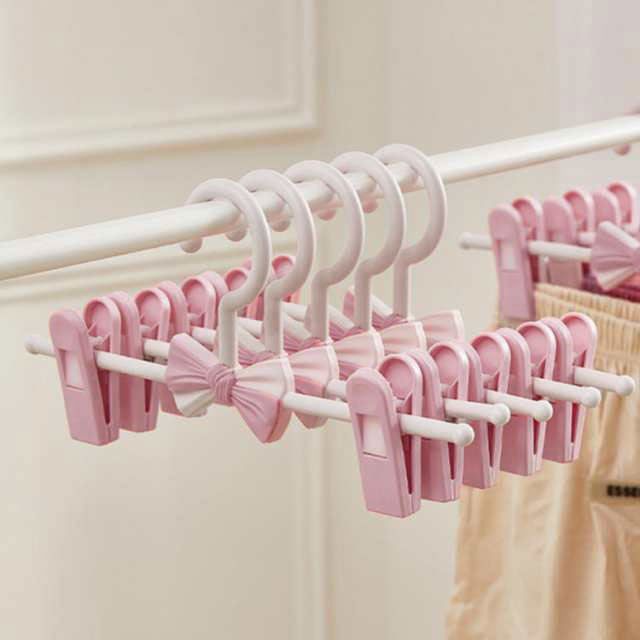 ズボンハンガー 蝶結び ハンガー 子供 洗濯用品 物干しハンガー 豊富 ピンク ブルー