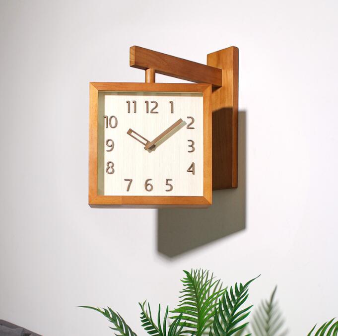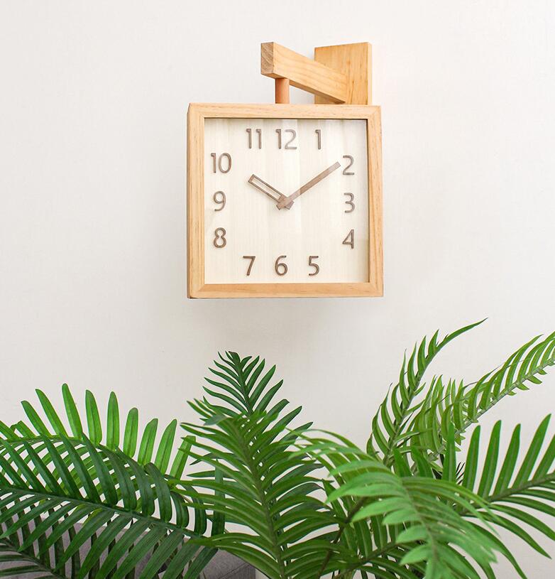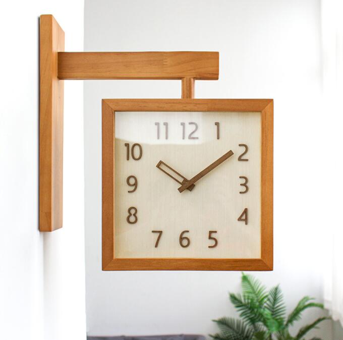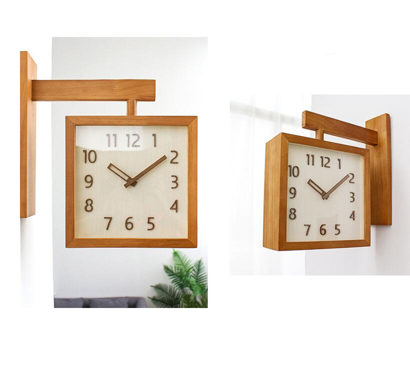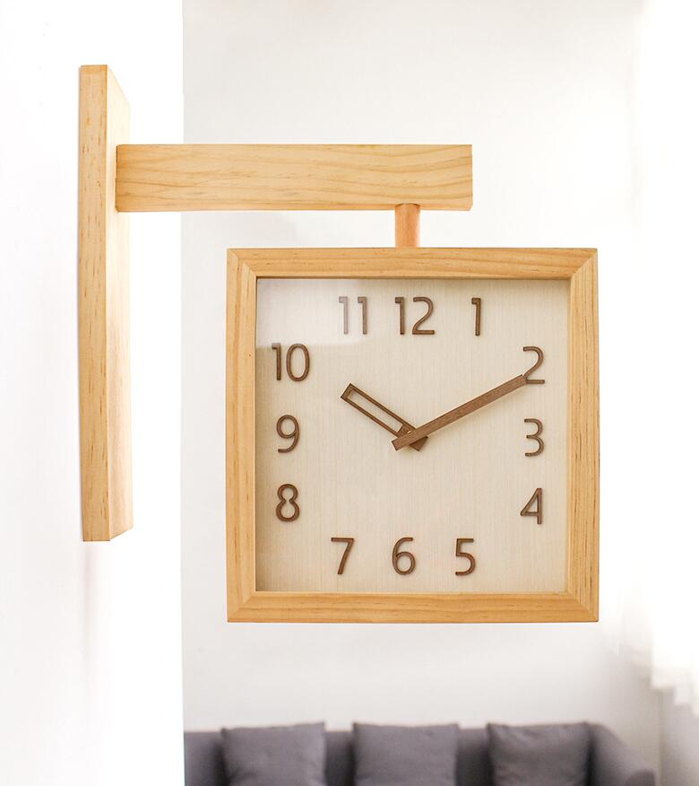 時計 両面 壁掛け 掛け時計 木製 北 ベージュ ブラウン