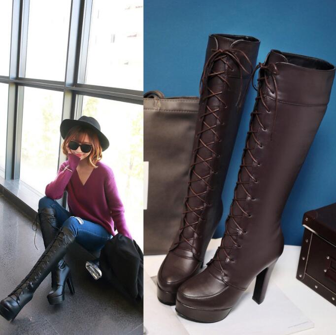 厚底ブーツ ロングブーツ レースアップ 靴 人気 22cm 22.5cm 23cm 23.5cm 24cm 24.5cm 25cm 25.5cm 26cm 26.5cm ブラック ブラウン