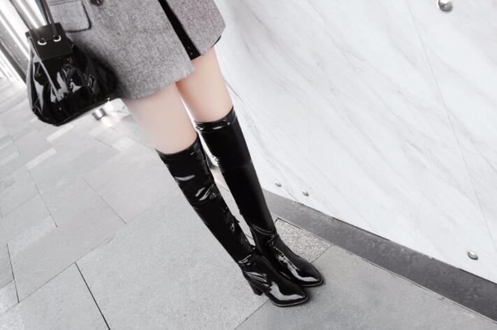 レディースブーツニーハイブーツエナメル 靴 人気 22cm 22.5cm 23cm 23.5cm 24cm 24.5cm 25cm 25.5cm 26cm 26.5cm 27cm 27.5cm 28cm 28.5cm 29cm ブラックエナメル ブラックスエット