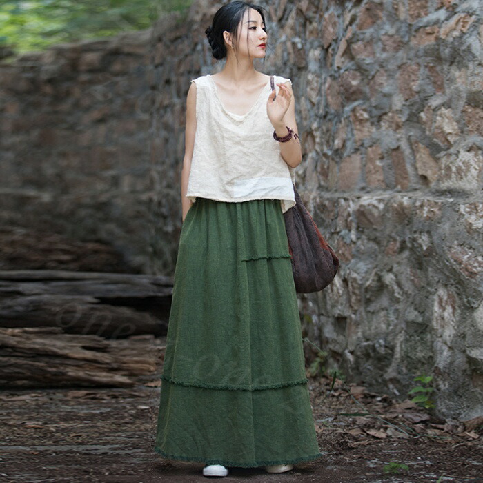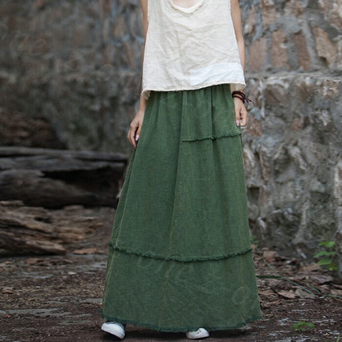 スカート ロング ティアード マキシ レディースファッション 通販 グリーン ブラック