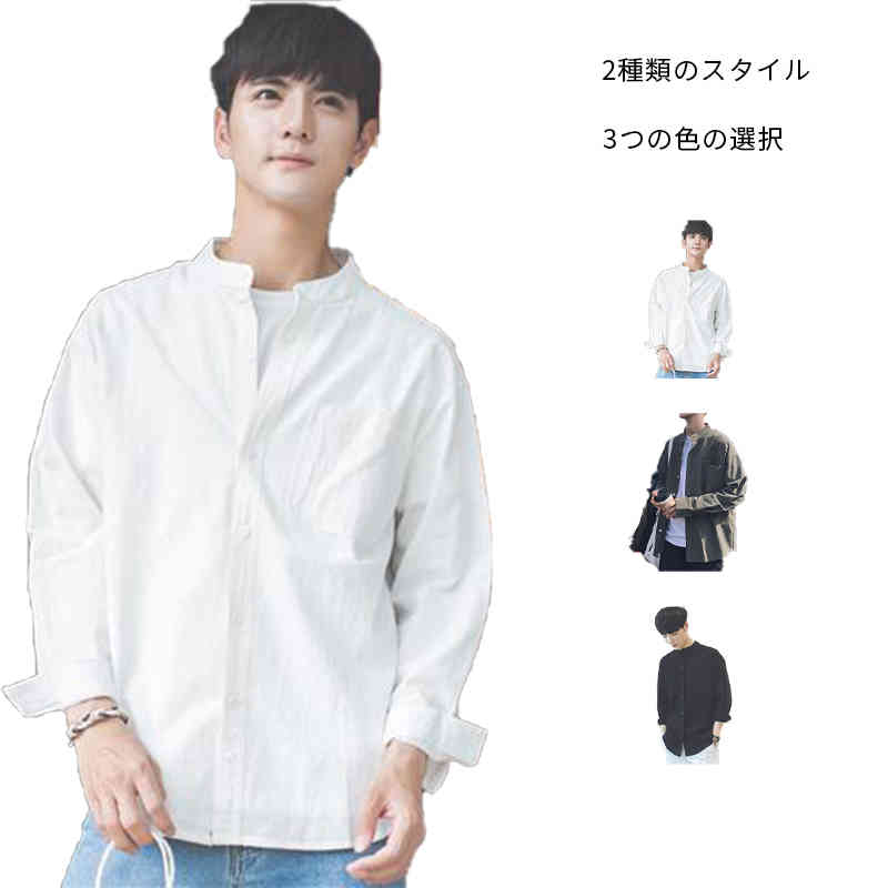 立ち襟シャツ 通学 カジュアルウエア メンズファッション 早い者勝ち 7分袖ブラック 7分袖ホワイト 7分袖グリーン グリーン ホワイト ブラック M L XL 2XL