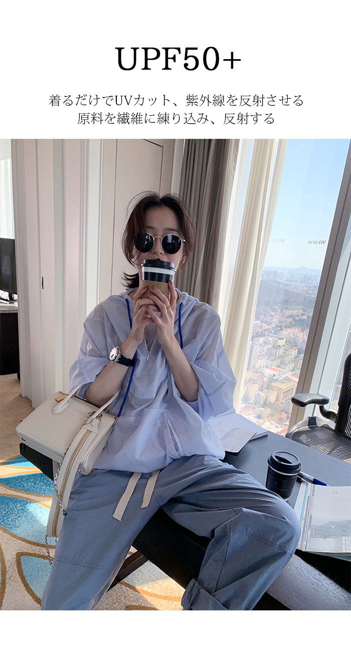 uvカット パーカー 接触冷感 ラッシ レディースファッション 新作 ピンク アプリコット グレーブルー グリーン チェックブルー S M L XL
