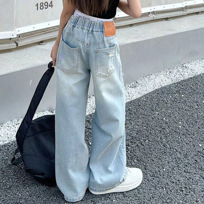 女の子 デニムパンツ 韓国子供服 ジーンズ 長ズボン ボトムス ワイドパンツ キッズ おしゃれ 子ども服 ストレートパンツ 学生 デニム ロングパンツ ブラック ブルー 演出 発表会 入学式 旅 散歩