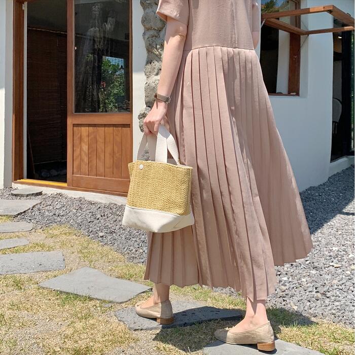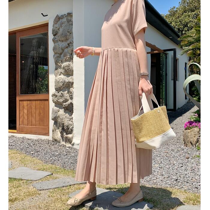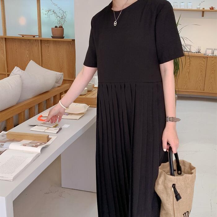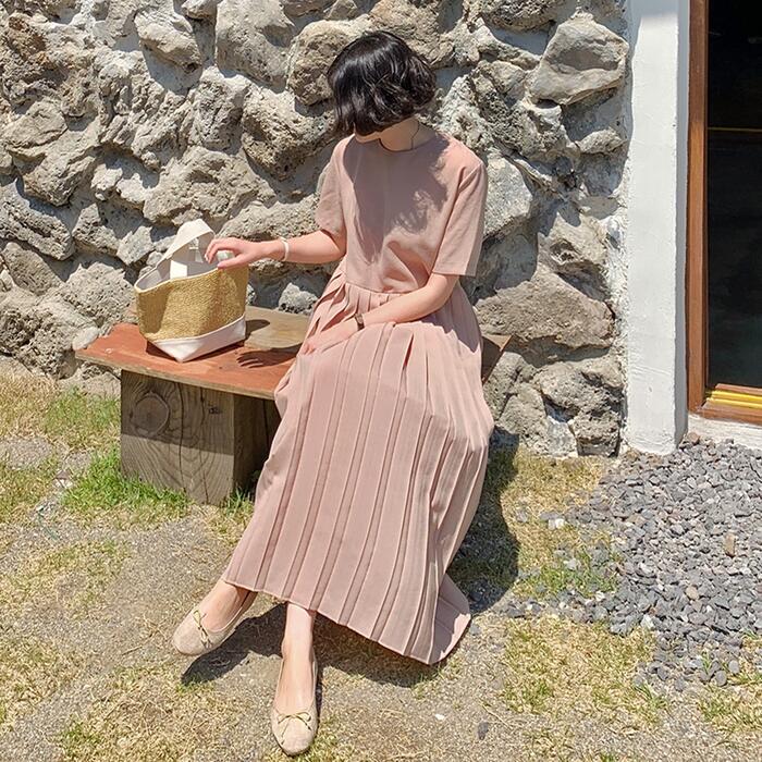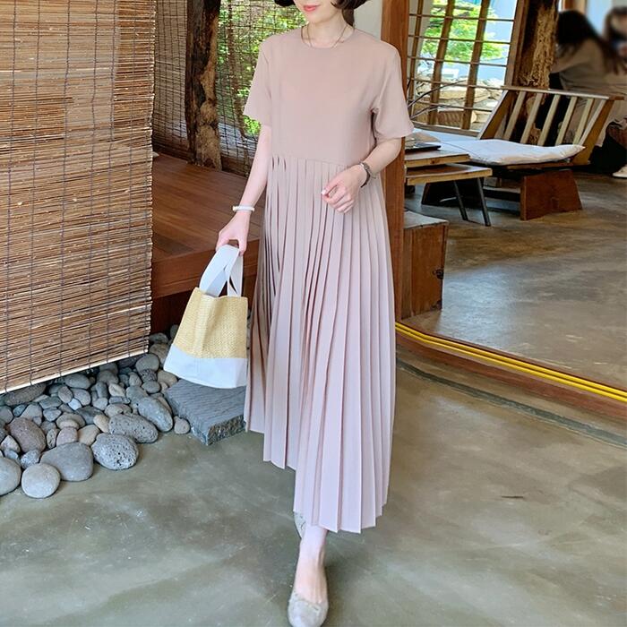 ワンピース プリーツ 切り替え ナチュ レディースファッション 新登場! ブラック アプリコット S M L XL