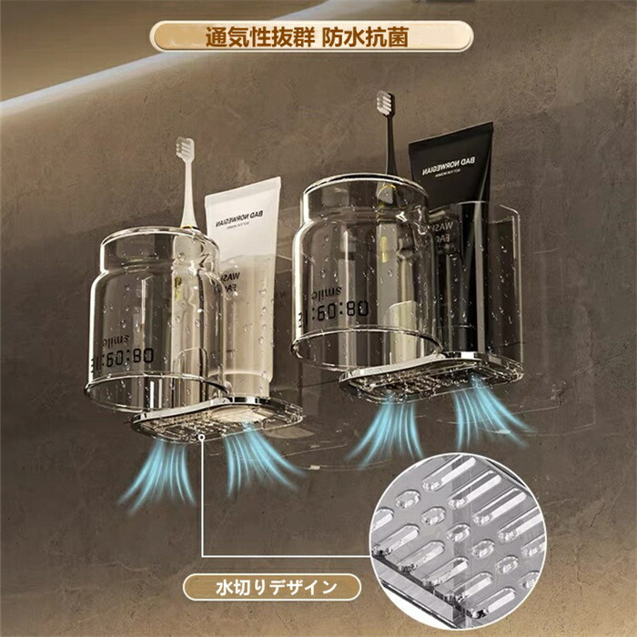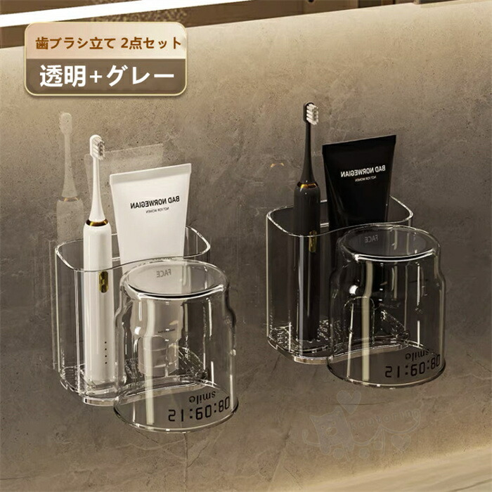 歯ブラシホルダー 2点セット 歯ブラシ 日用品雑貨 文房具 手芸 特集 透明+グレー 透明*2 グレー*2