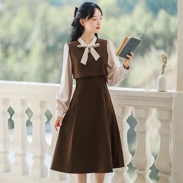 文芸 着痩せ 大人 春秋 マキシ丈 ロ レディースファッション 超目玉商品 レッド ブラック コーヒー S M L XL 2XL