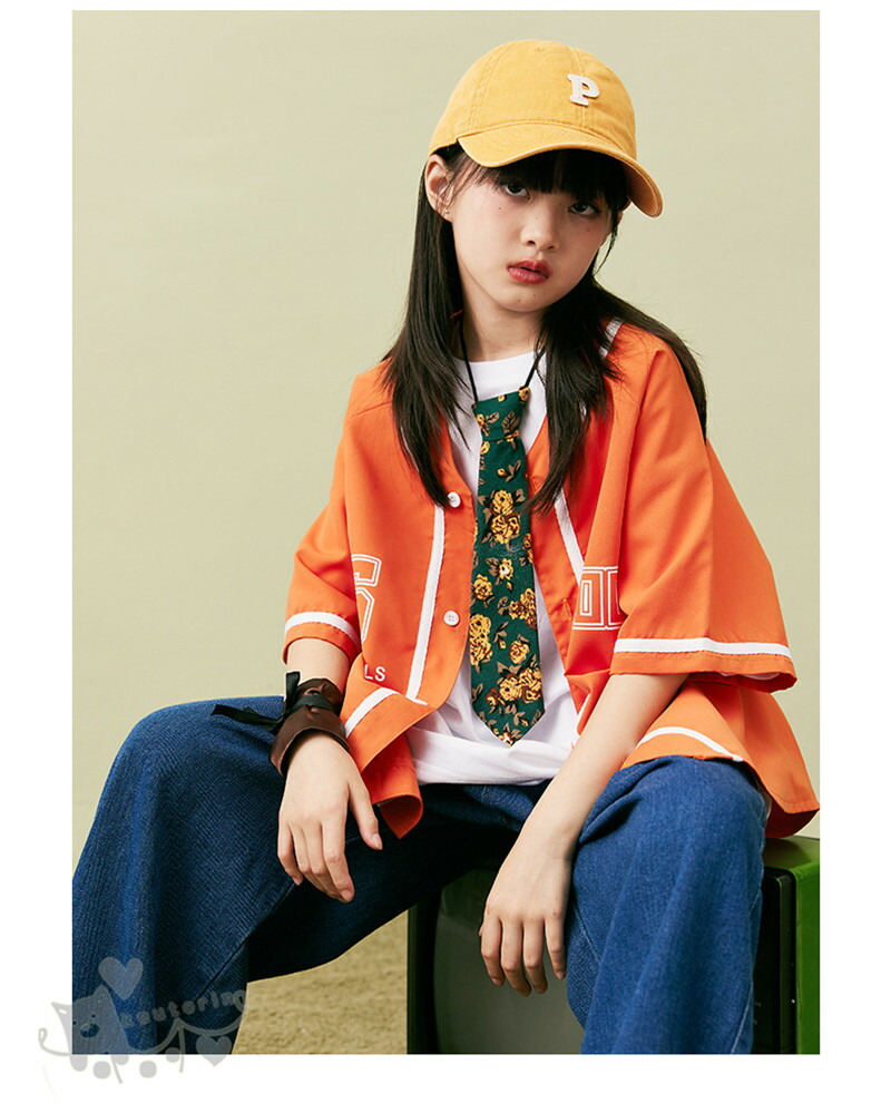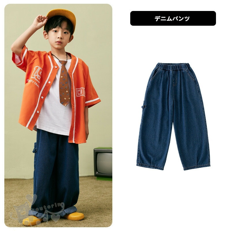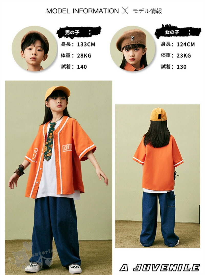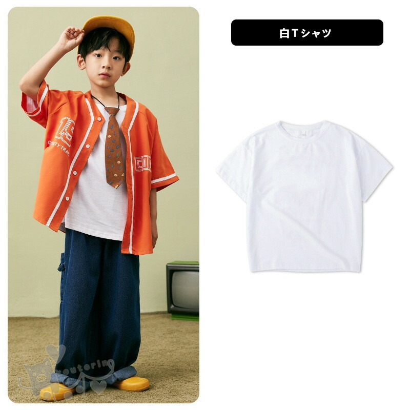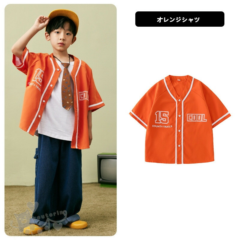 ベースボールシャツ ダンス衣装 キッズ キッズ ベビー マタニティ 新作 白Tシャツのみ オレンジシャツのみ デニムパンツのみ 2点セット 3点セット 110cm 120cm 130cm 140cm 150cm 160cm 170cm 180cm