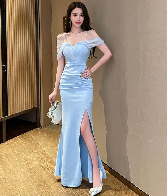 お嬢様 着痩せ ロングドレス 優雅 イ ドレス 新登場! ブルー ホワイト S M L XL 2XL