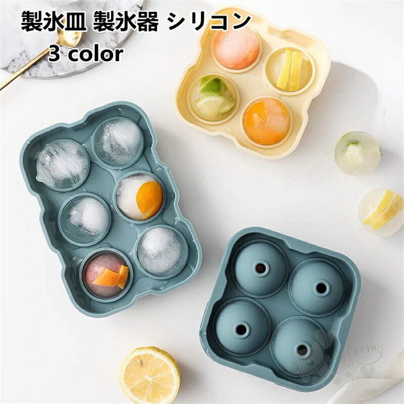 製氷皿 製氷器 シリコン 蓋付き 4グ 日用品雑貨 文房具 手芸 人気 ブルー イエロー グレー