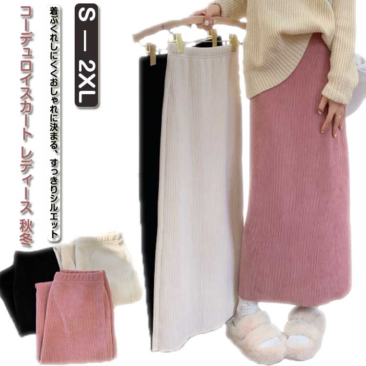 ウエストゴム コーデュロイスカート 秋 ボトムス スカート 人気 ピンク ホワイト ブラック S M L XL 2XL