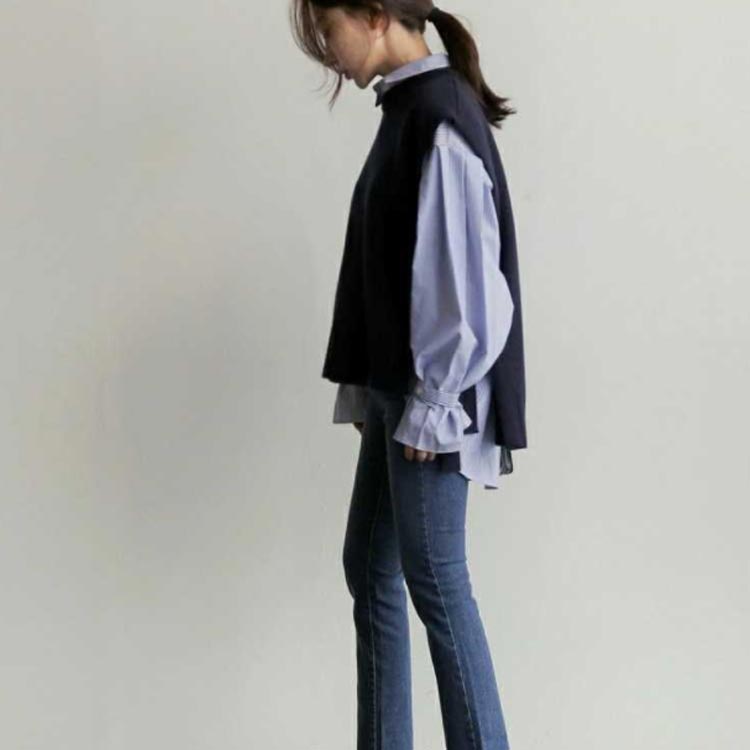 シアースリーブ ドッキングシャツ ボウタイシャツブラウス