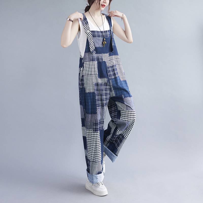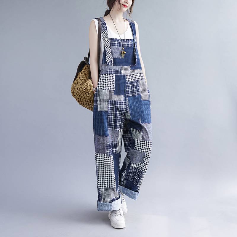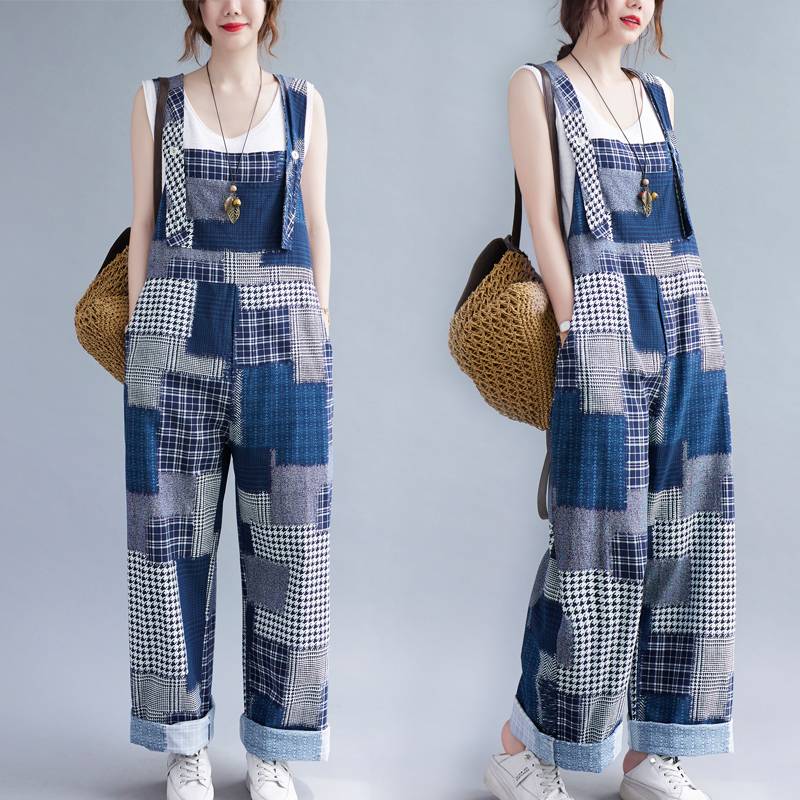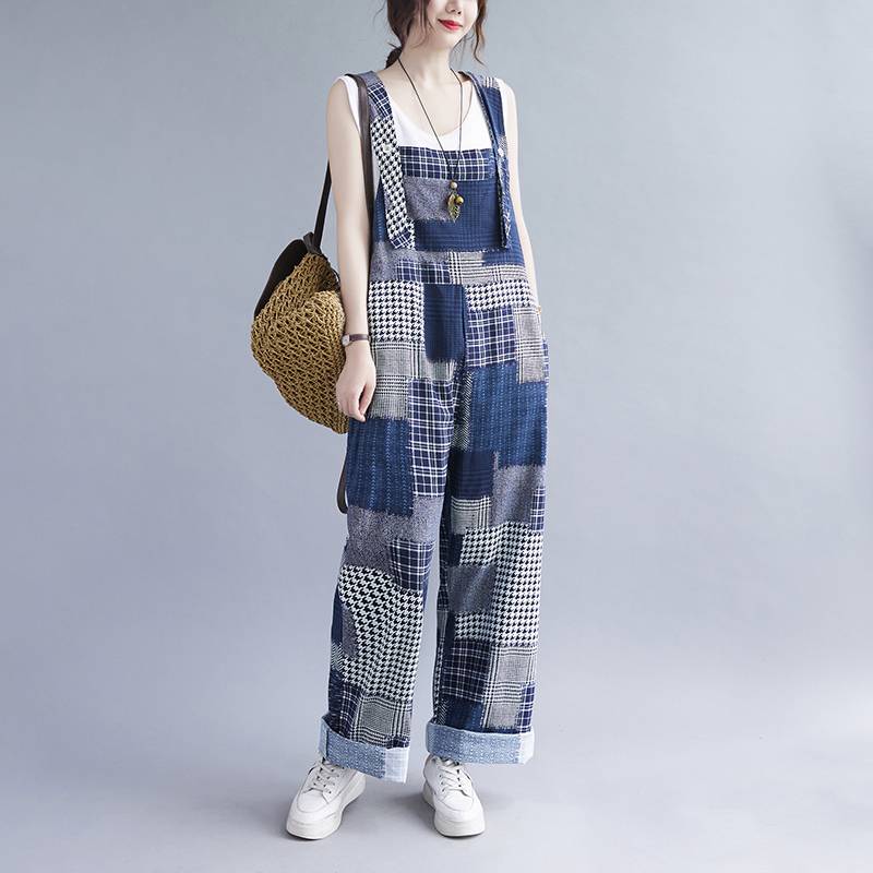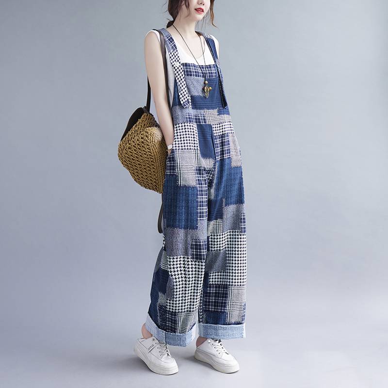 オーバーオール サロペット レディース パンツ オールインワン 個性的 ロング丈 パッチワーク ブルー デニム 春 夏 ポケット ゆったり メンズライク ボーイッシュ 可愛い おしゃれ 主 カジュアル