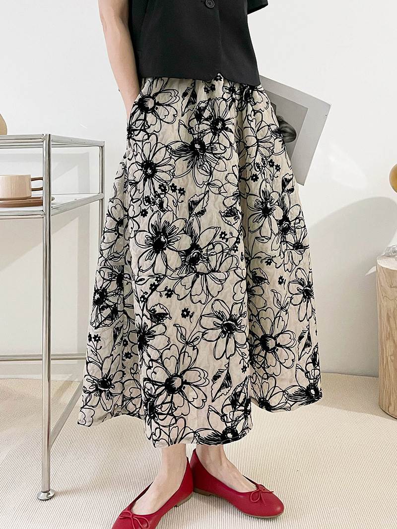 ボトムス スカート ロングスカート レディース フレアスカート Aライン 花柄 ウエストゴム かわいい 大人可愛い きれいめ シンプル 上品 おしゃれ かっこいい 個性的 レトロ きちんと こなれ感