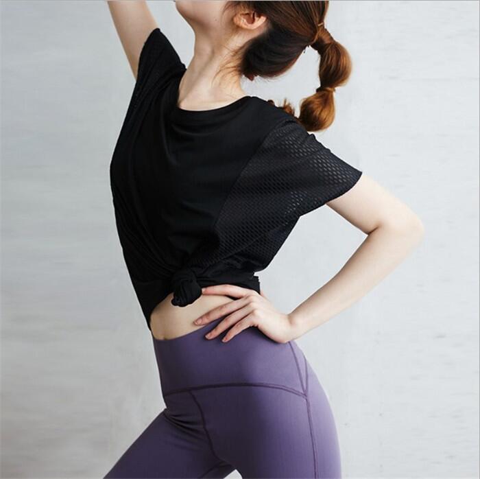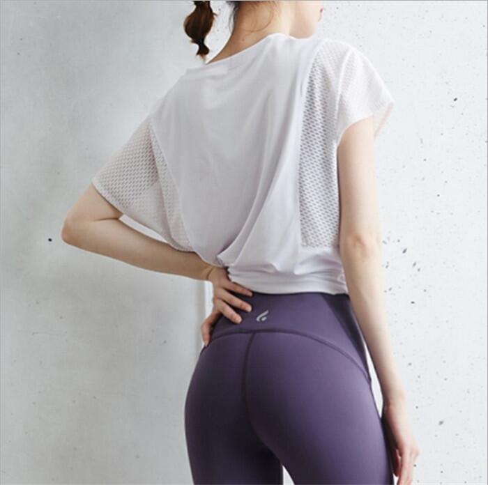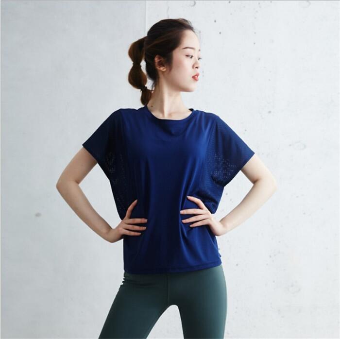 ヨガウェア トップス Tシャツ かわい ヨガ ピラティス ウェア トップス 豊富 ブラック ホワイト ネイビー ブルーグレー ピンク S M L XL