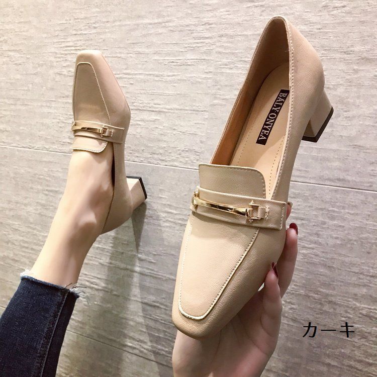 スクエアトゥ パンプス 靴 シューズ 靴 豊富 ブラック ベージュ カーキ 35【22.5cm】 36【23.0cm】 37【23.5cm】 38【24.0cm】 39【24.5cm】 40【25.0cm】